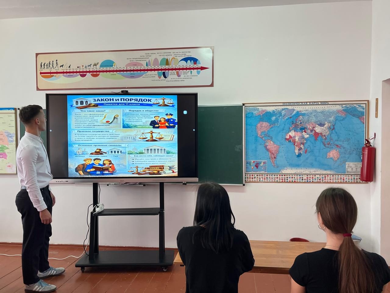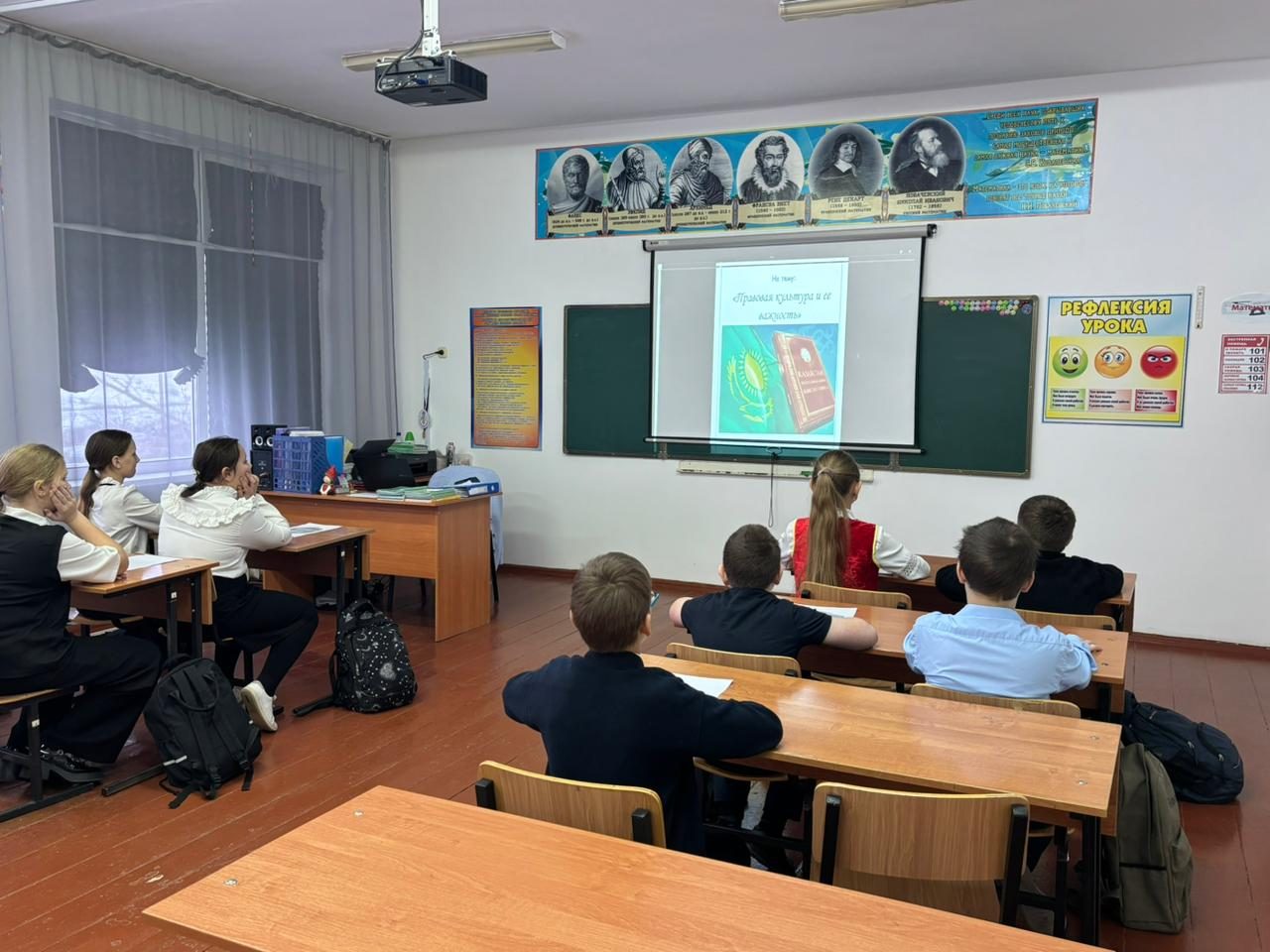 «Құқық және тәртіп» айлығы аясында біздің мектепте біртұтас сынып сағаты «Құқықтық мәдениет және оның маңызы» өткізілді.