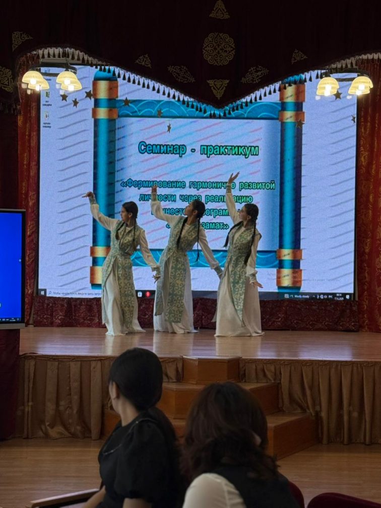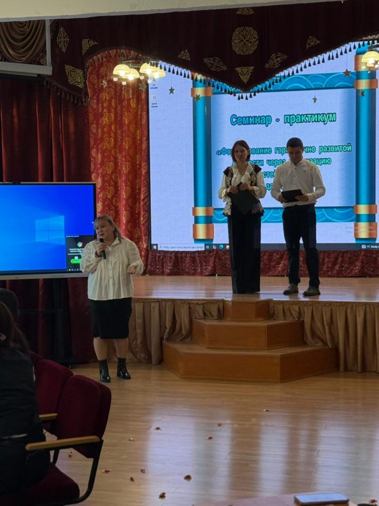 Жүргізушілер мен мектеп әкімшілігінің салтанатты құттықтауынан кейін қатысушыларға практикалық алаңдардың бағдарламасы таныстырылды. Семинар мастер-класс форматында өтті, бұл әр педагогке белсенді қатысушы болып, алдағы жұмысында қолдануға болатын практикалық материал алуға мүмкіндік берді.